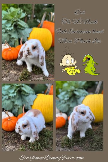 The American Mini Plush Lop is a unique, very rare specialty breed created by Devie D’Anniballe in the 1990s in Ohio (American Line). She succeeded in developing them by combining the previously existing breeds of Holland Lop, Mini Rex, Netherland Dwarf, and Mini Lop. Her aim was to create the perfect pet by retaining the good qualities of these breeds while "breeding out" all the problems existing in these breeds. These bunnies are velvet-soft, low-shedding, and hypoallergenic.